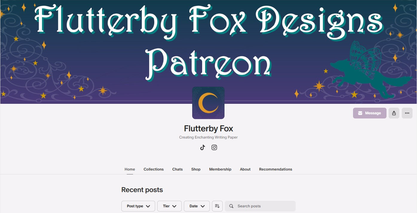 You can follow Flutterby Fox for FREE on Patreon to stay up to date with the latest pages and information. For monthly goodies sent to your mailbox each month, join one of the rewards tiers!