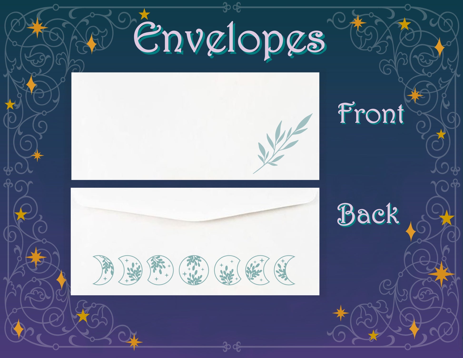 Envelopes are white and standard business size- 9.5 x 4.12 inches.