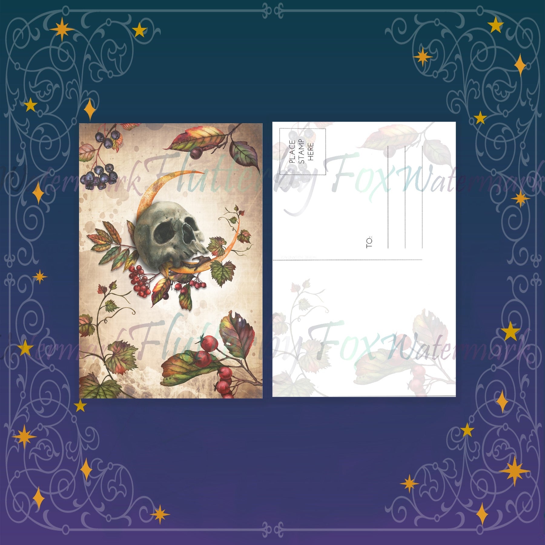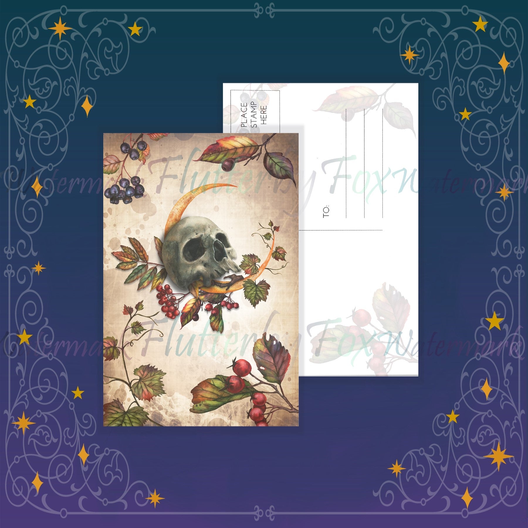 This listing is for a single postcard or set of postcards. The designs are printed on a 4x6 inch standard postcard. The design is matte finish.