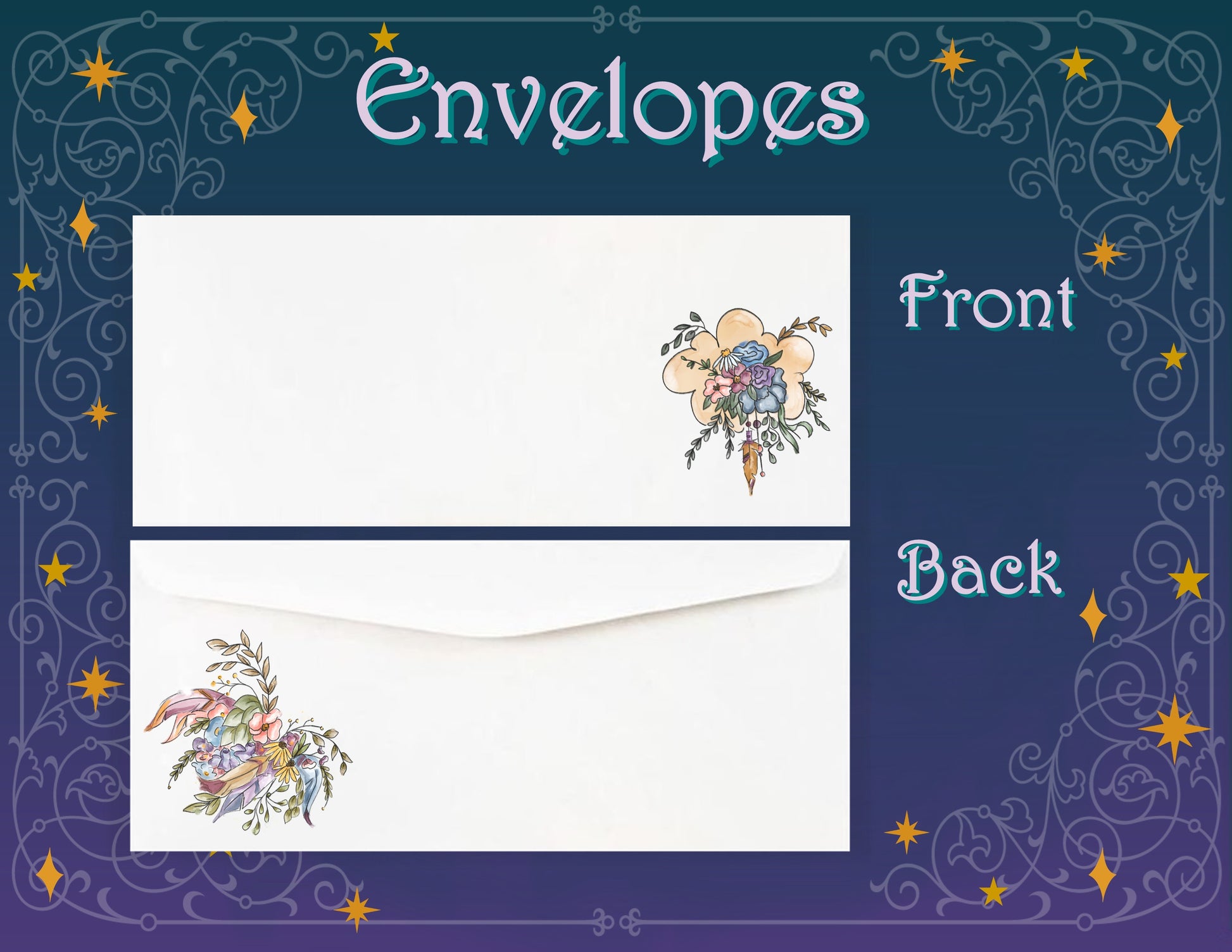 Envelopes are white and standard business size- 9.5 x 4.12 inches.