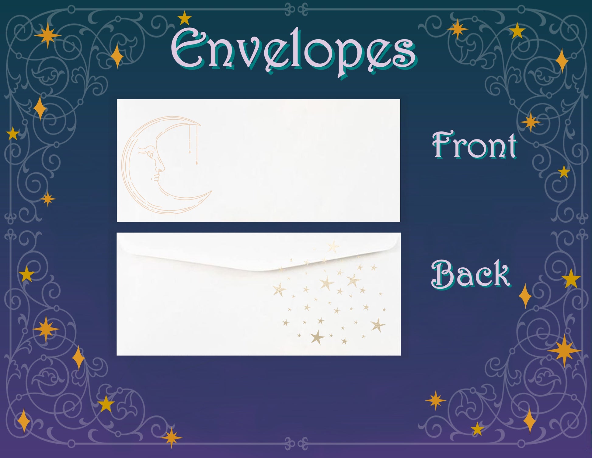 Envelopes are white and standard business size- 9.5 x 4.12 inches.