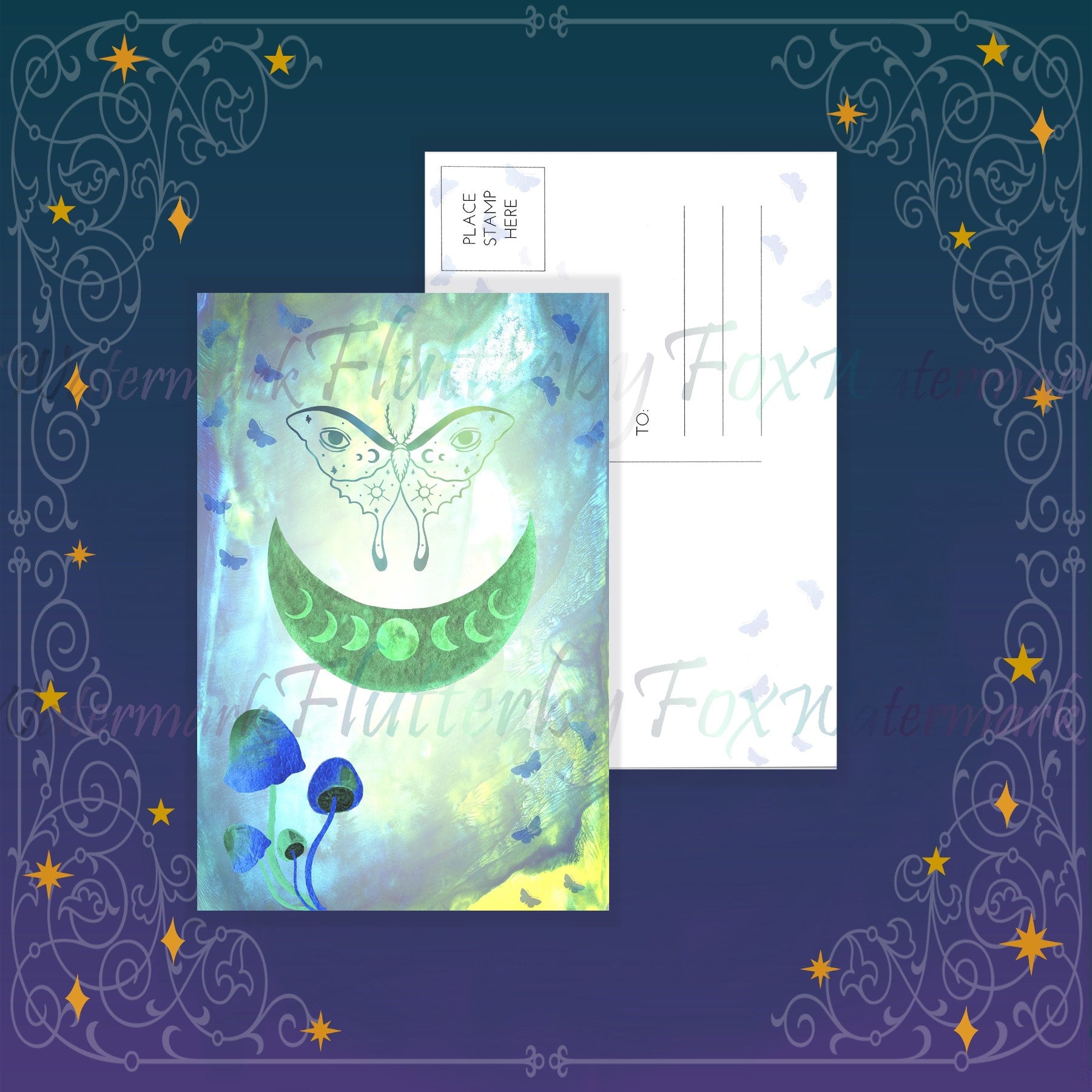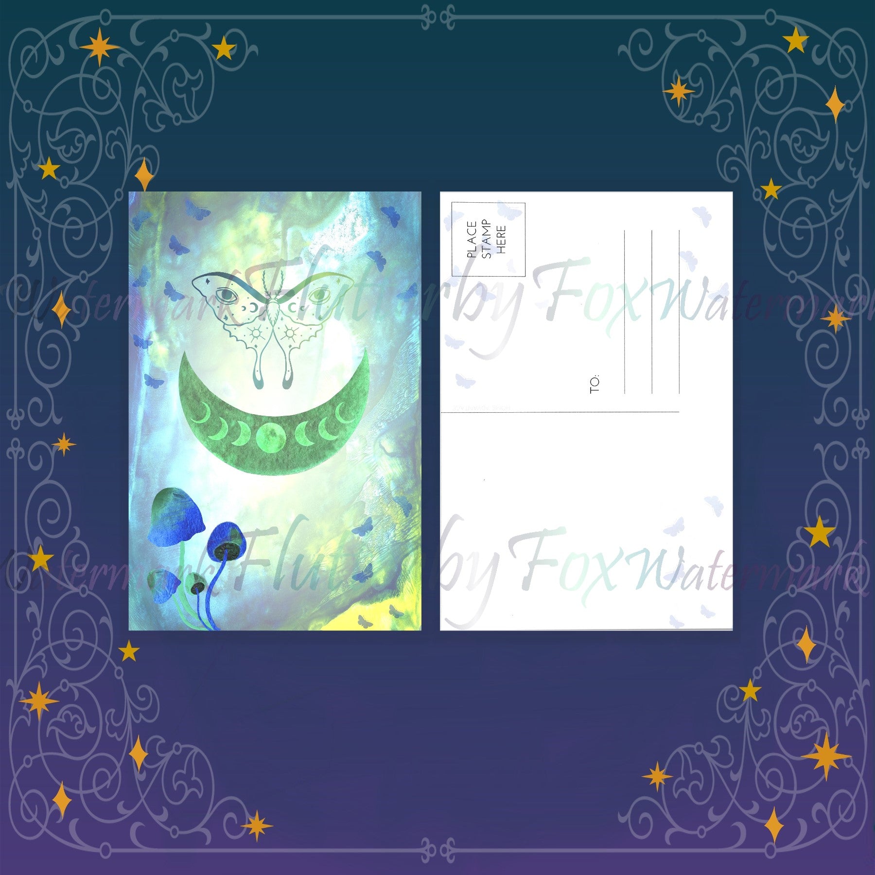 This listing is for a single postcard or set of postcards. The designs are printed on a 4x6 inch standard postcard. The design is matte finish.