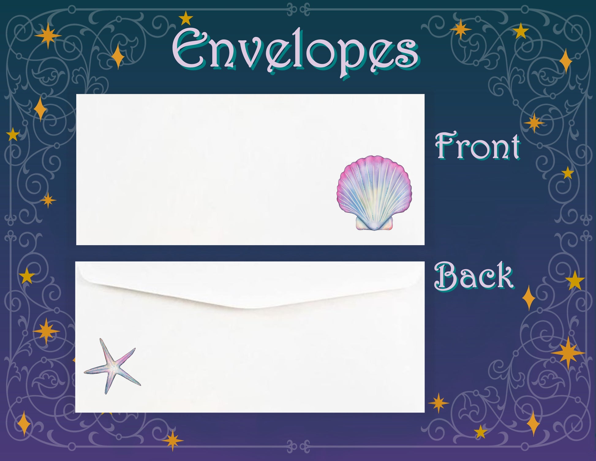 Envelopes are white and standard business size- 9.5 x 4.12 inches.