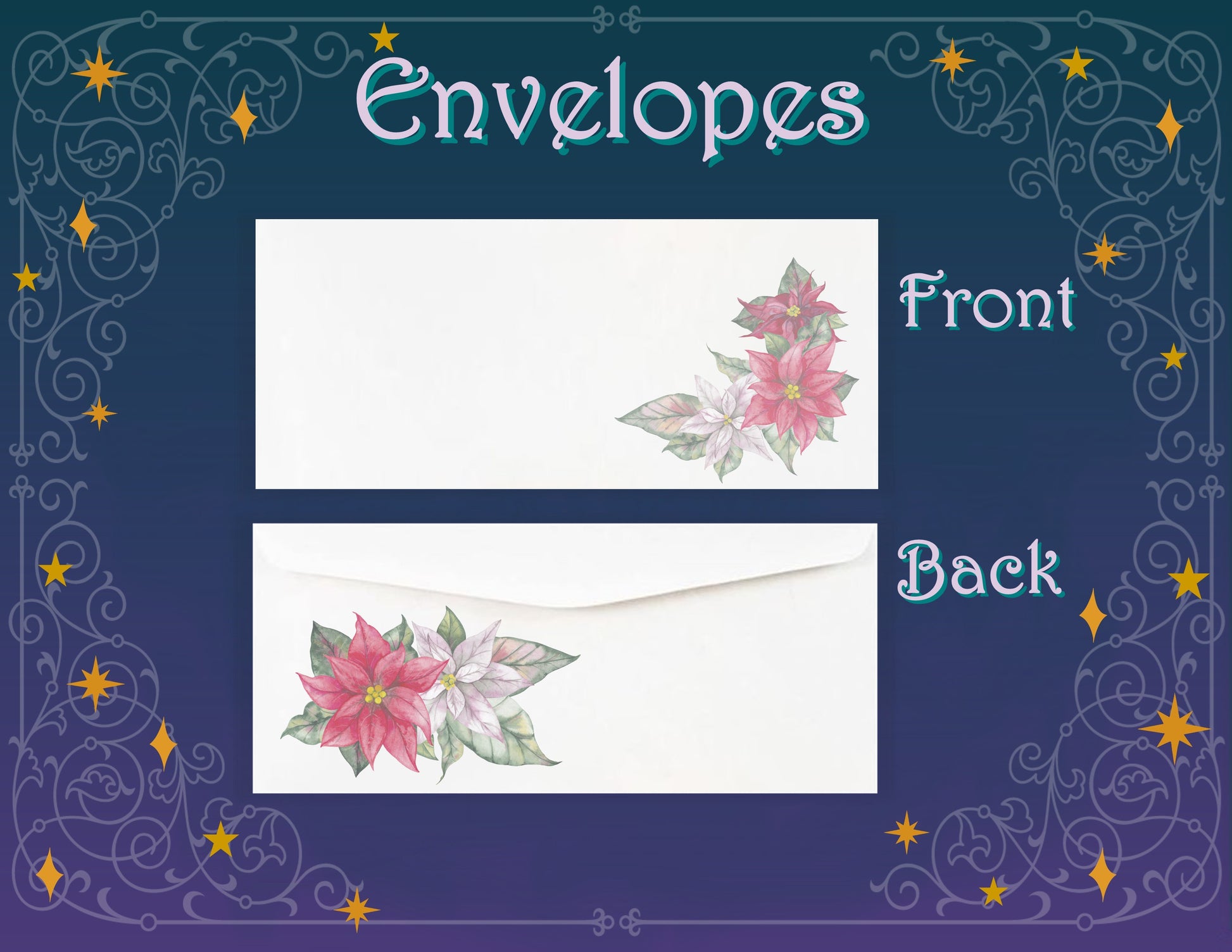 Envelopes are white and standard business size- 9.5 x 4.12 inches.