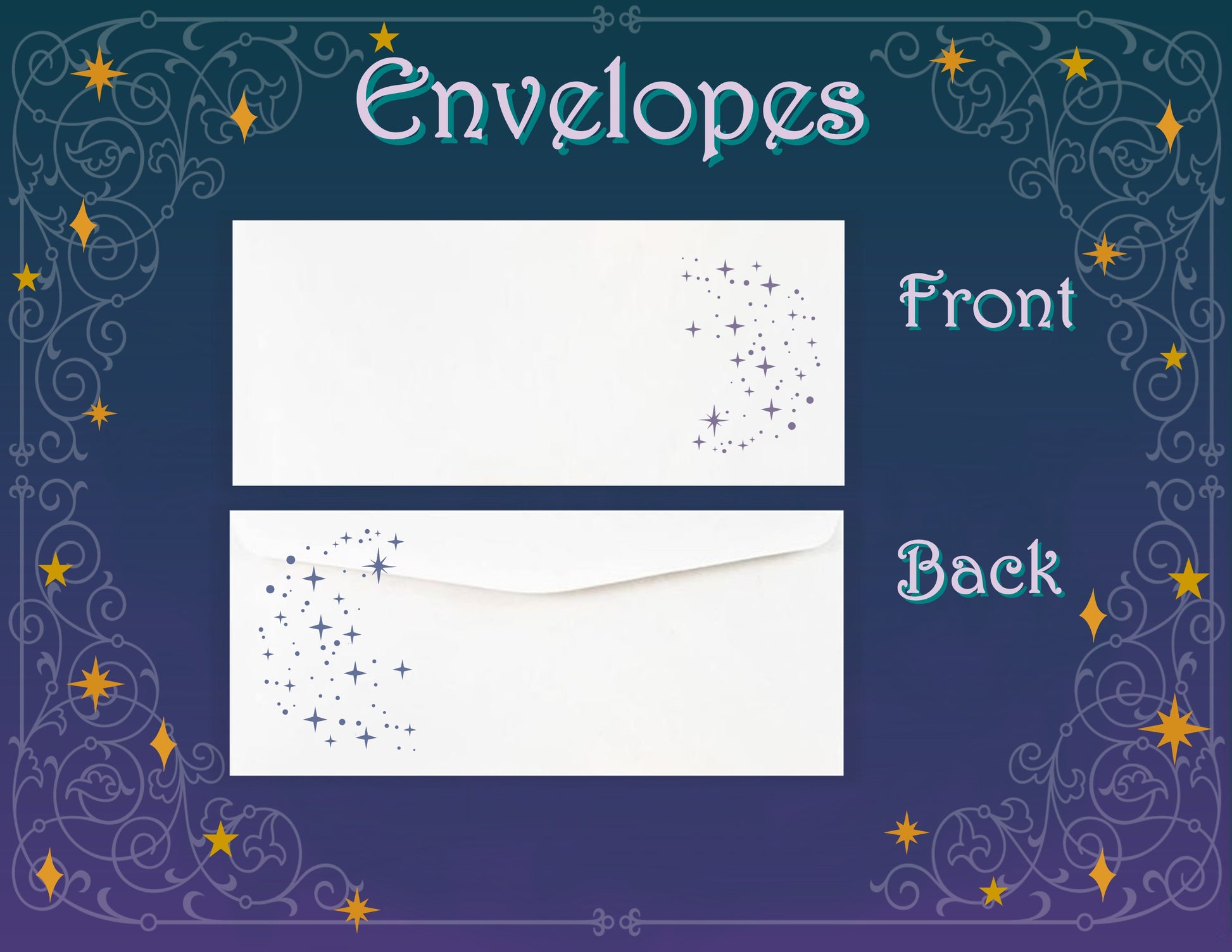 Envelopes are white and standard business size- 9.5 x 4.12 inches.